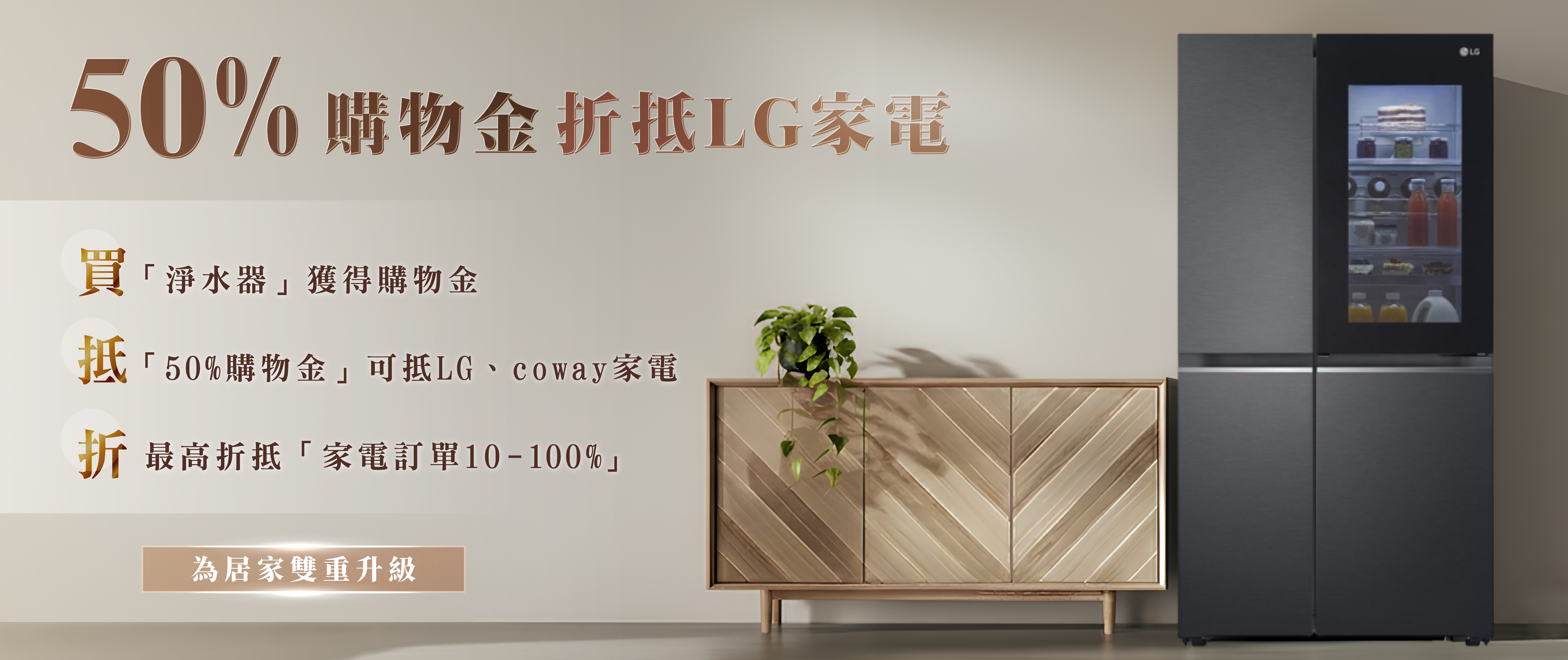 50%購物金折抵LG家電、coway家電、OASIS免安裝飲水機