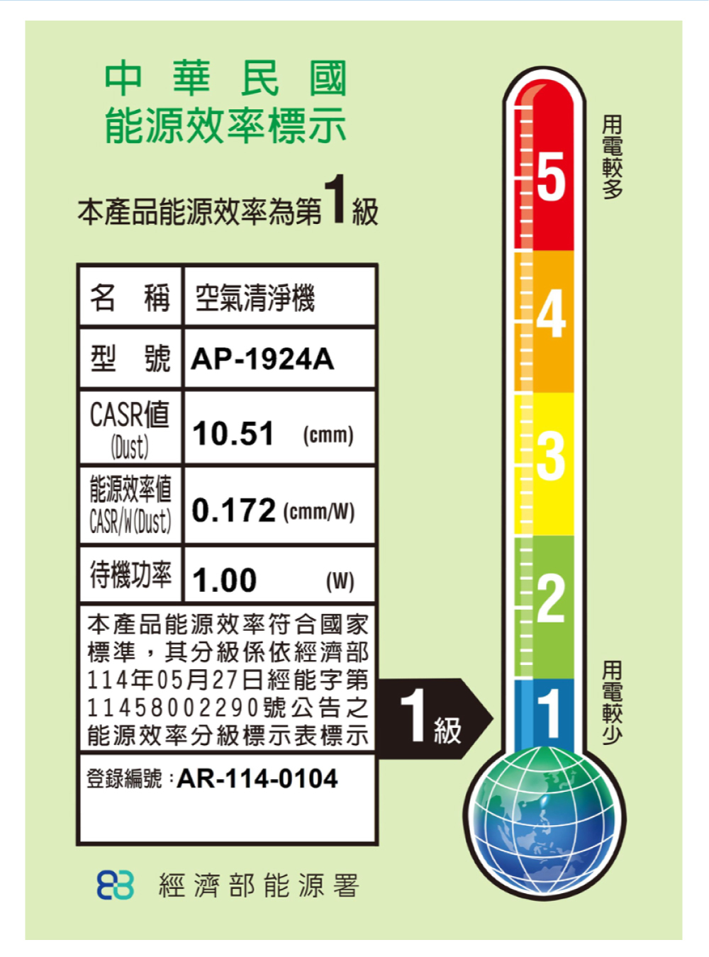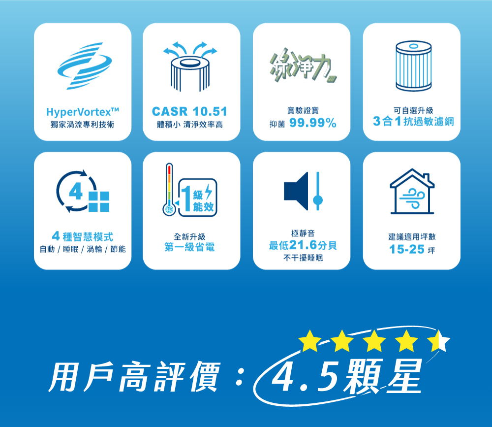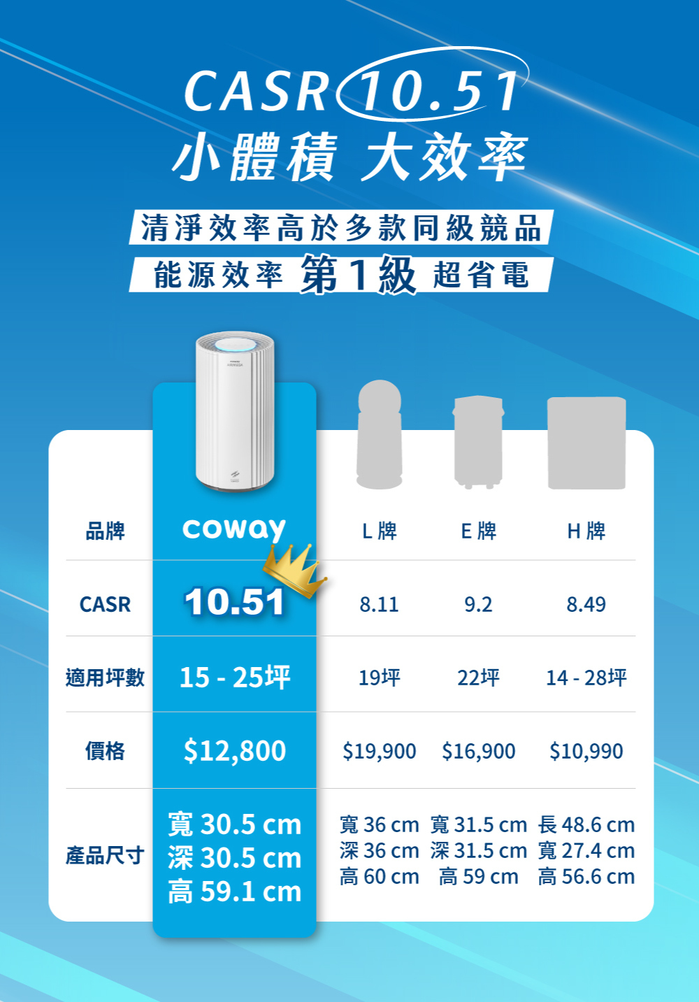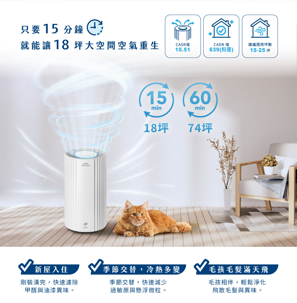 1. CASR 10.51 同級效能最強,15分鐘淨化18坪