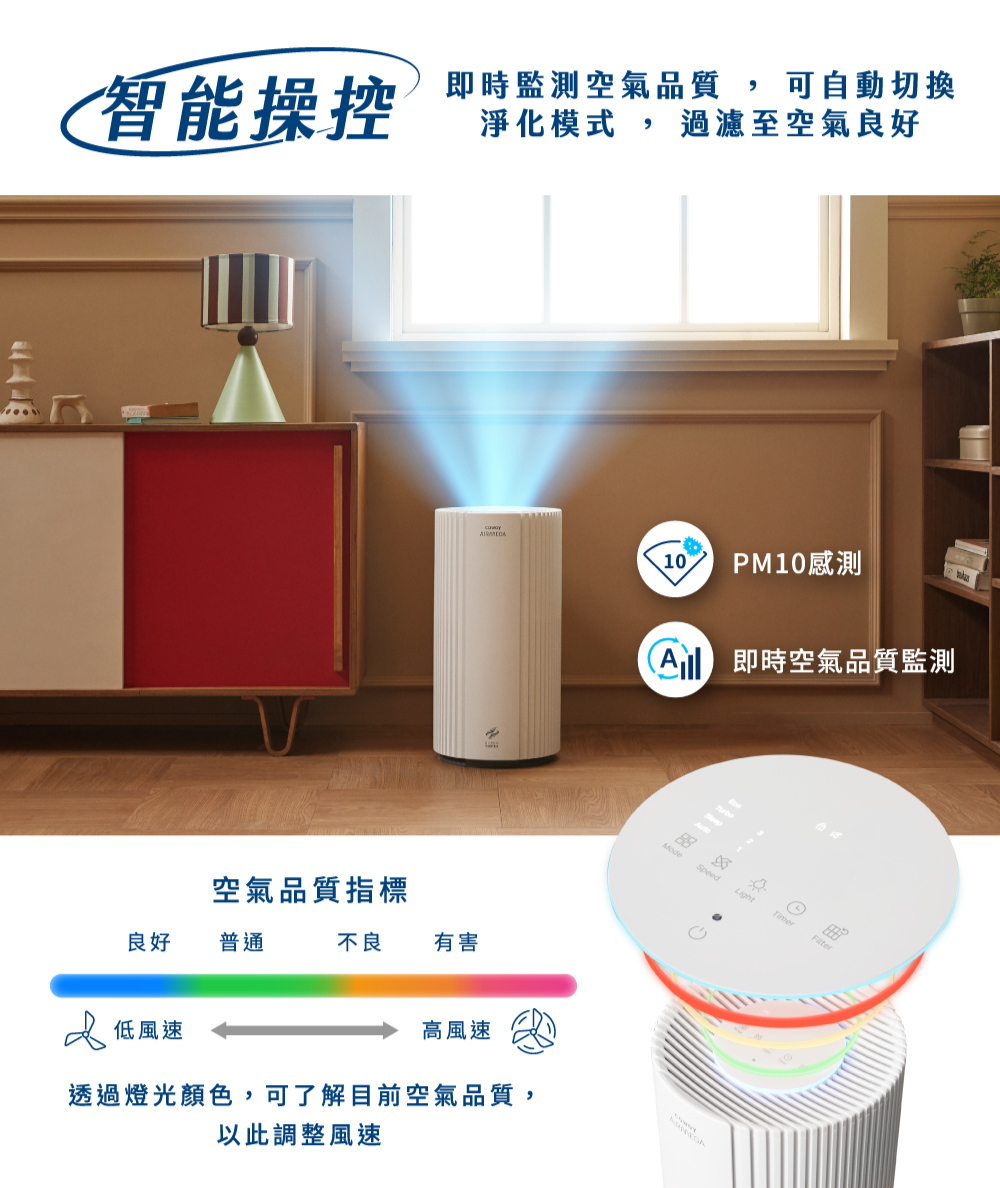5.智慧偵測PM10微粒,空氣品質由燈號即時顯示