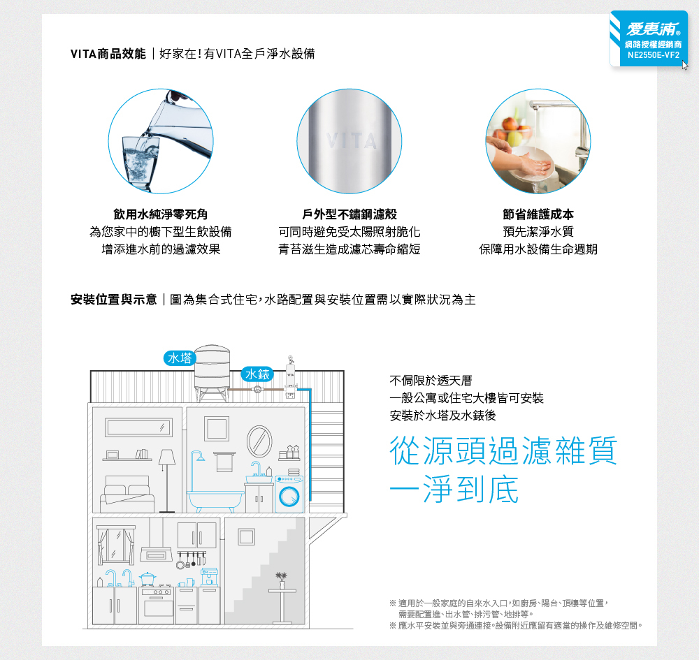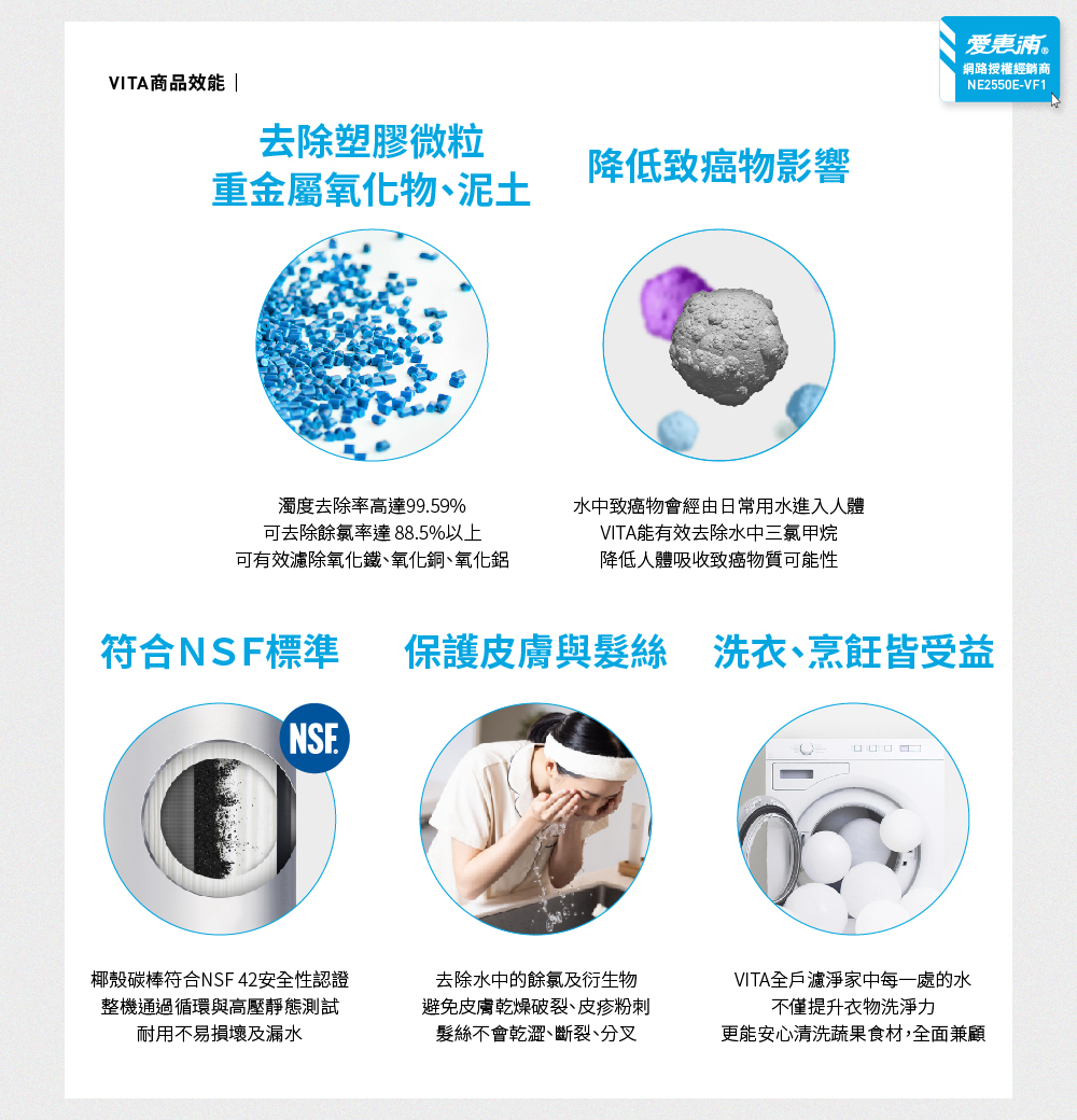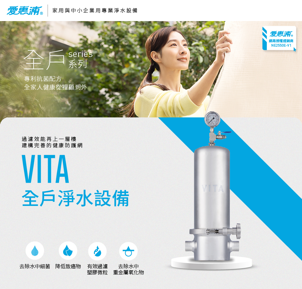 1.全戶淨水去除餘氯,保護全家肌膚水潤、秀髮柔順