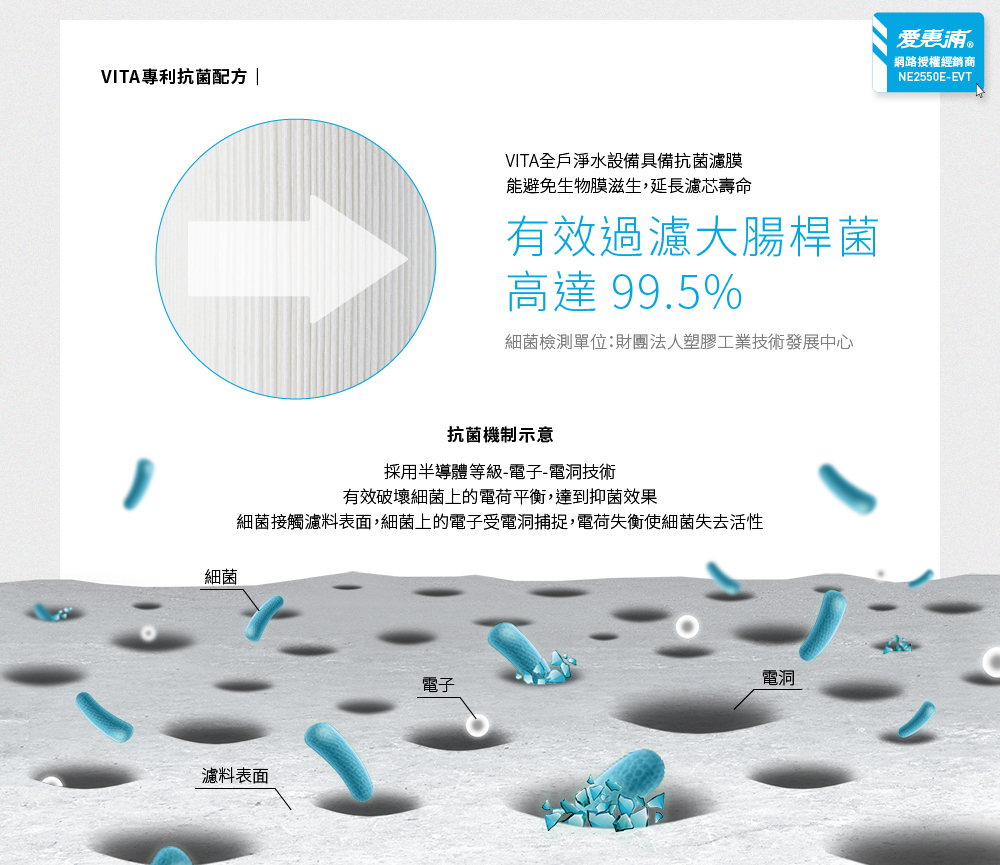 3.抗菌濾膜過濾大腸桿菌達99.5%,杜絕全戶細菌污染