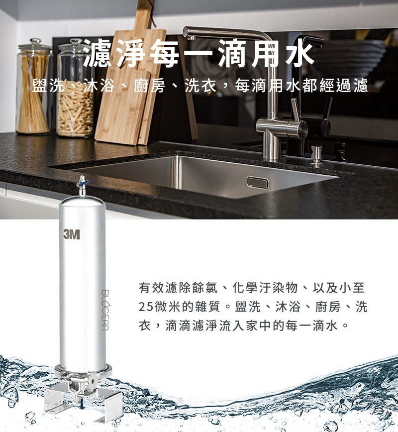有效濾除餘氯、化學汙染物、以及小至25微米的雜質