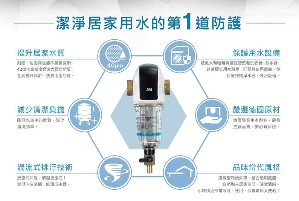◆提升居家水質:40微米高性能不鏽鋼濾網,有效過濾大顆粒雜質,保持家庭水管清潔,全面提升沐浴、洗滌用水品質。