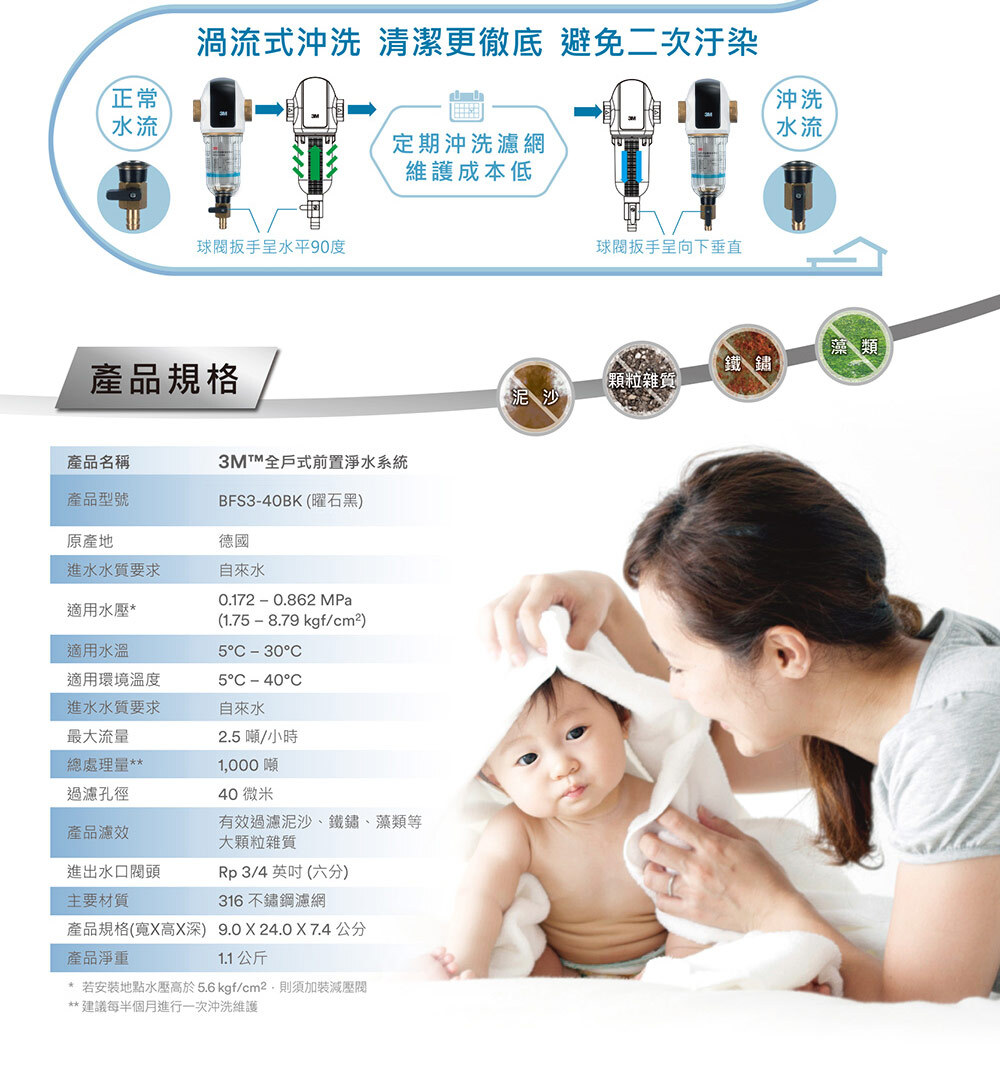 • 3M BFS3-40BK 全戶式前置反洗式淨水系統 (曜石黑)