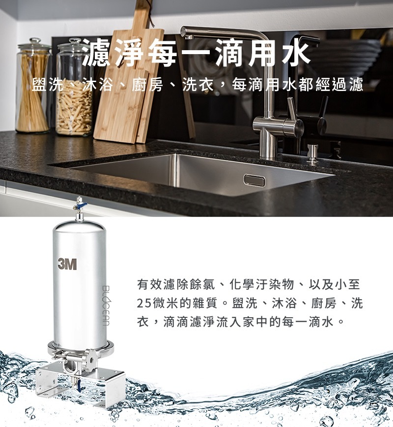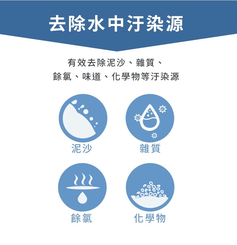 有效濾除餘氯、化學汙染物、以及小至25微米的雜質