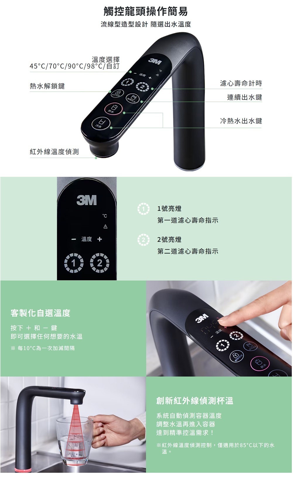 3. 創新紅外線控溫功能,精準提供溫熱水