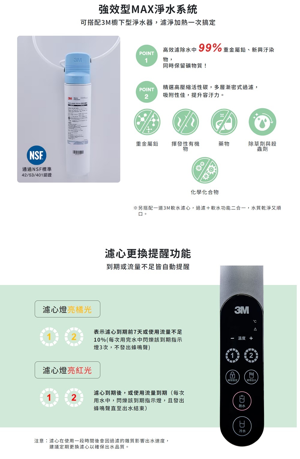 6. 雙道濾心計時設計,提醒更換濾心