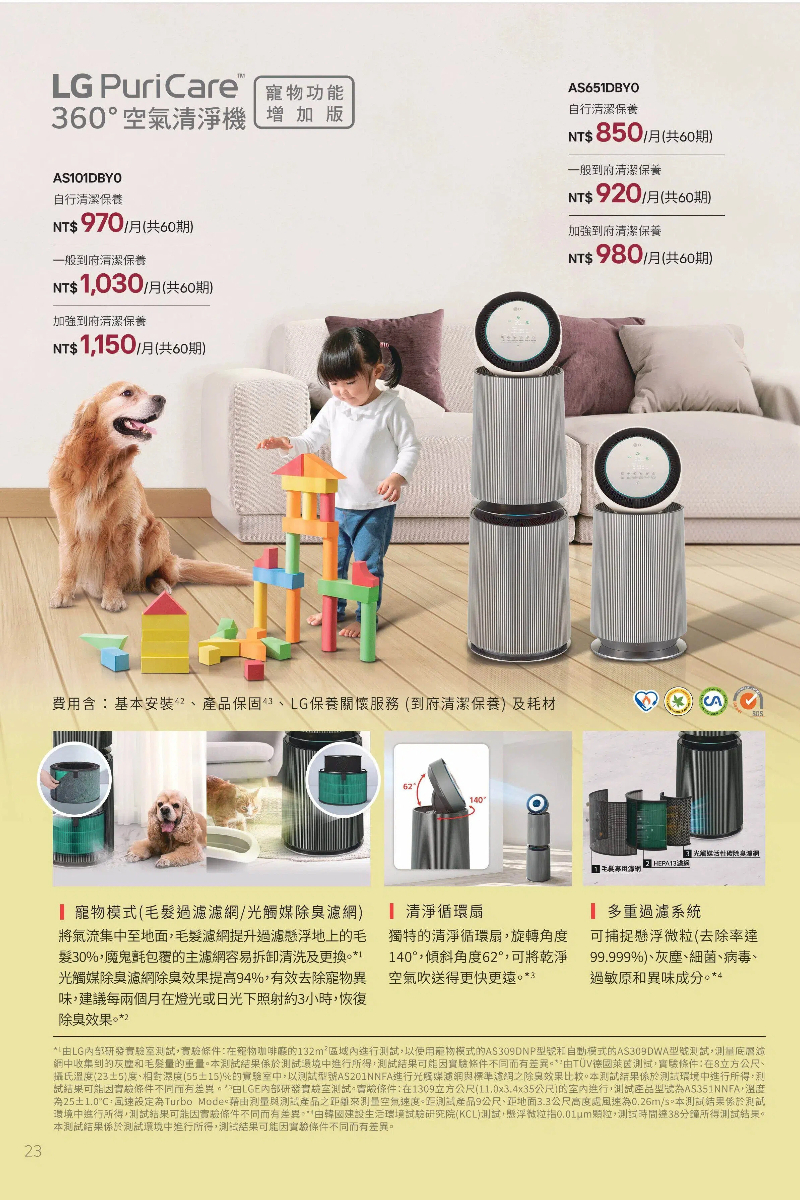 租賃期間更提供定期LG保養關懷服務與免費保固,