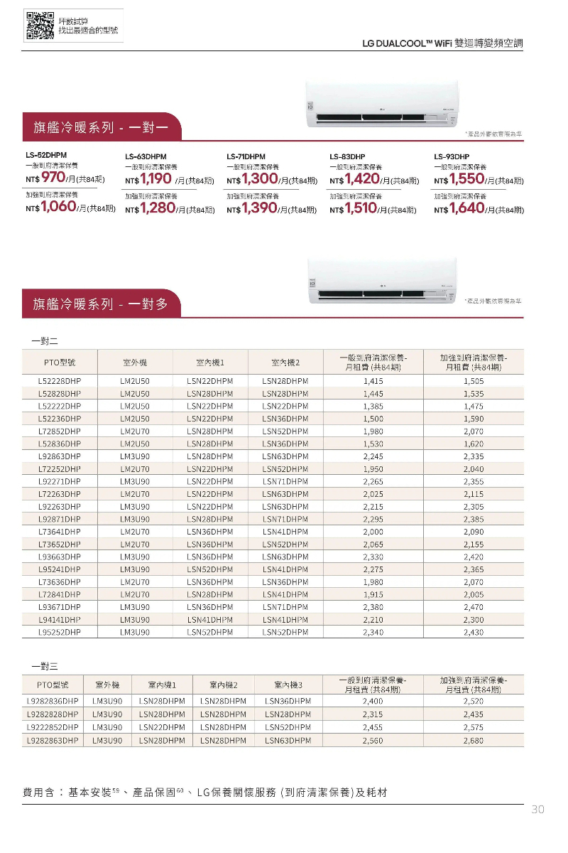 租賃期間更提供定期LG保養關懷服務與免費保固,